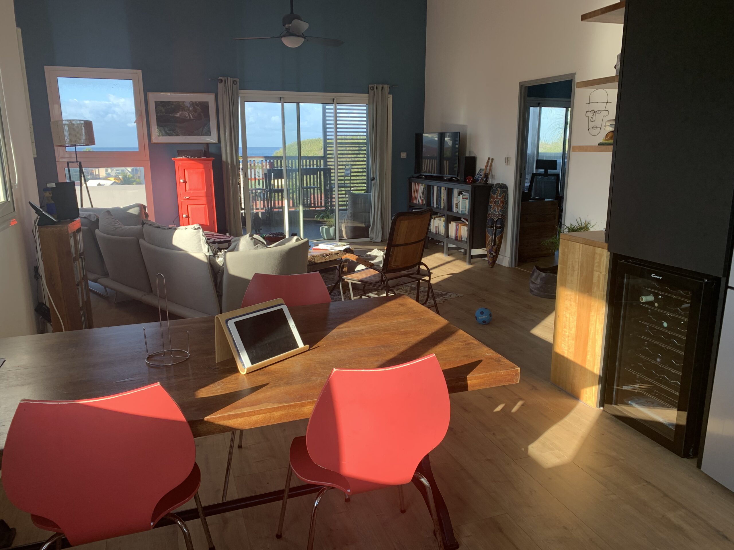Il est composé d'une cuisine ouverte sur la pièce de vie, de 3 chambres, d'une salle de bains, d'un WC indépendant, d'un rangement fermé sur la palier et d'une grande varangue.